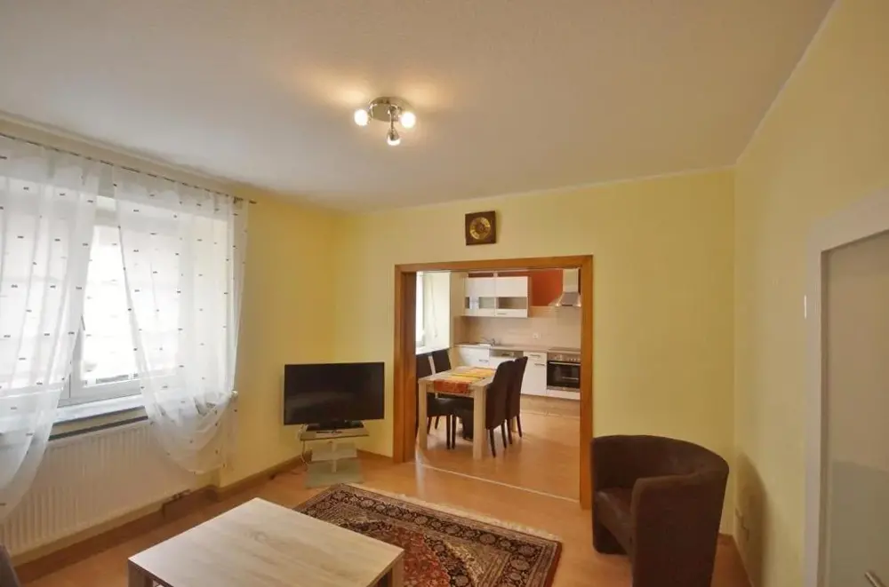 Ferienwohnung Moog in Oberdorfstraße 12, 56295 Lonnig, Deutschland, ist eine gut ausgestattete Unterkunft mit einer voll eingerichteten Küche, Waschmaschine und freiem WLAN. Die Wohnung besteht aus einem Schlafzimmer und einem Wohnzimmer sowie einem Essbereich mit Tisch und Sofa-Bett. Außen steht ein Sitzbereich zur Verfügung, wo Gäste auch eine Grillmöglichkeit nutzen können. Der Innenhof ermöglicht zusätzlichen Raum zum Entspannen. Zu den praktischen Einrichtungen gehören eine Kaffeemaschine, eine Spülmaschine und ein Fernseher. Die Unterkunft bietet kostenlose private Parkplätze direkt am Grundstück. Im Umkreis befinden sich sehenswerte Orte wie das Schloss Eltz (9,9 Meilen), die Alte Burg in Koblenz und weitere historische Stätten. Die Ferienwohnung wurde positiv aufgrund ihrer Sauberkeit und des Komforts bewertet.